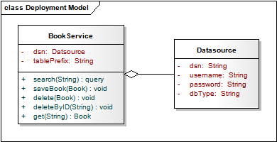 Back to the book service object. This service will need a datasource name (which could be encapsulated in a datasource object) in order to connect to the database and persist stuff. It might also need a table prefix to use (because I want to) and it comes from a setting in my application's configuration file. Ok, so now we know the following dependencies or external forces: